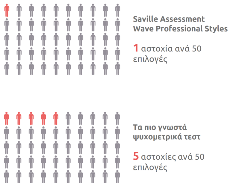 Βάσει ανεξάρτητων μελετών, τα ψυχομετρικά εργαλεία της Saville Assessment μειώνουν σημαντικά την πιθανότητα λάθους και αυξάνουν κατακόρυφα το επίπεδο σιγουριάς για κάθε επιλογή που κάνετε. Έτσι καταφέρνουν και επιτυγχάνουν ένα πολύ υψηλό ROI για την επιχείρησή σας.